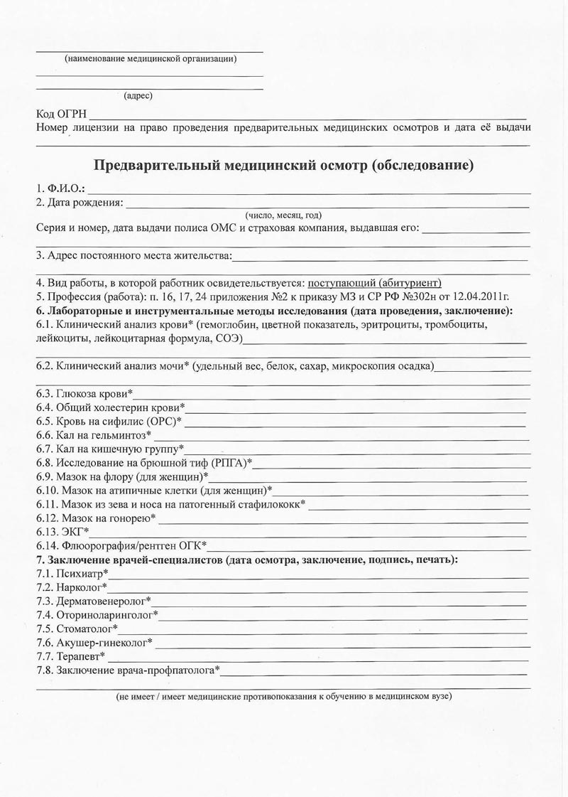 Сроки оформления и получения справки об успешном прохождении предварительного медицинского обследования абитуриентов в Симферополе